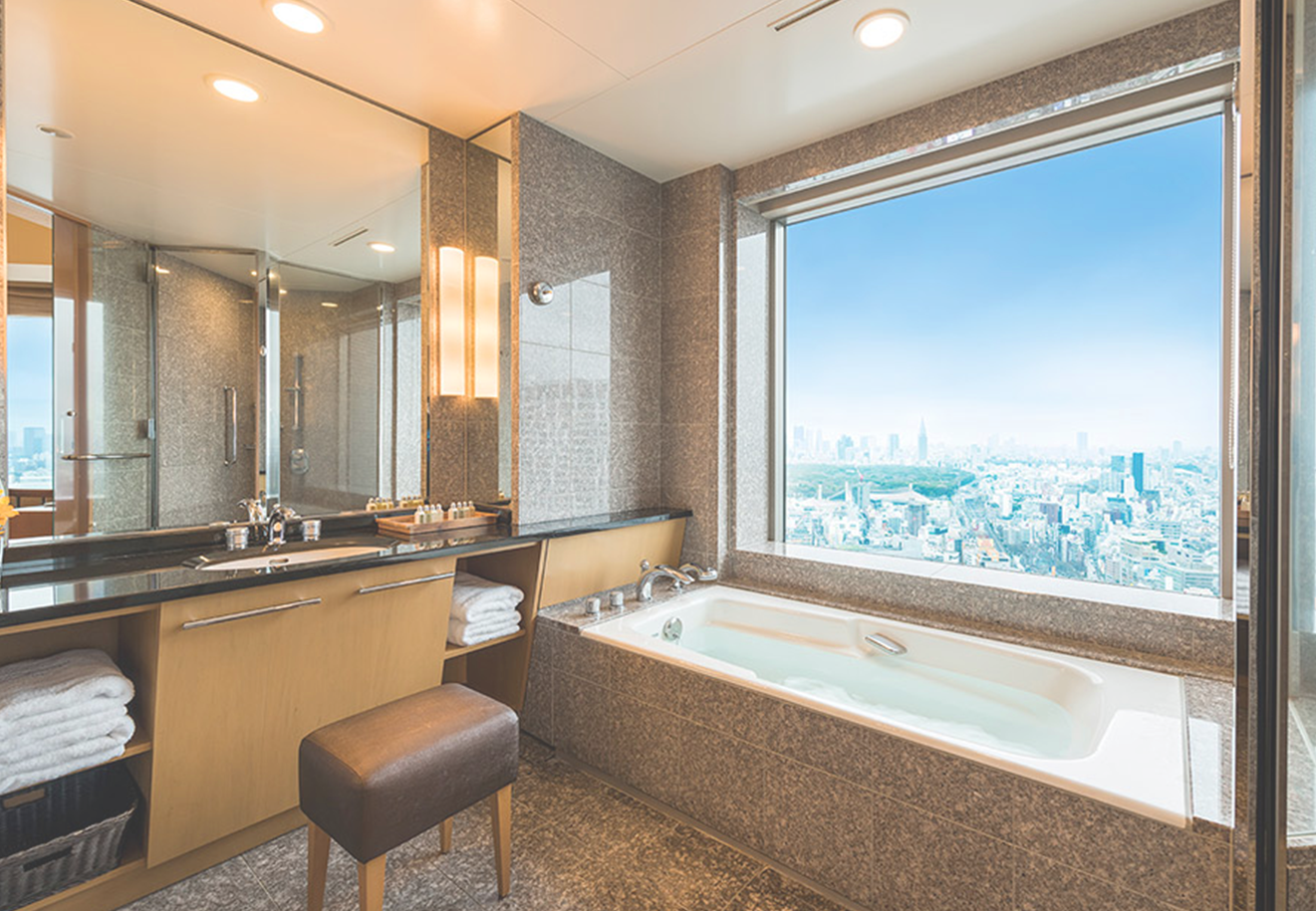 Guests can enjoy stunning views of Shinjuku, the Shibuya Station area, or the Tokyo Tower and Roppongi area. On clear days, rooms facing Shinjuku reveal sights like MIYASHITA PARK, the New National Stadium, and Tokyo Skytree in the distance. Each room features a view bath, allowing guests to soak in the night skyline while indulging in the hotel’s exclusive bath amenities, making it a perfect retreat at the end of the day.