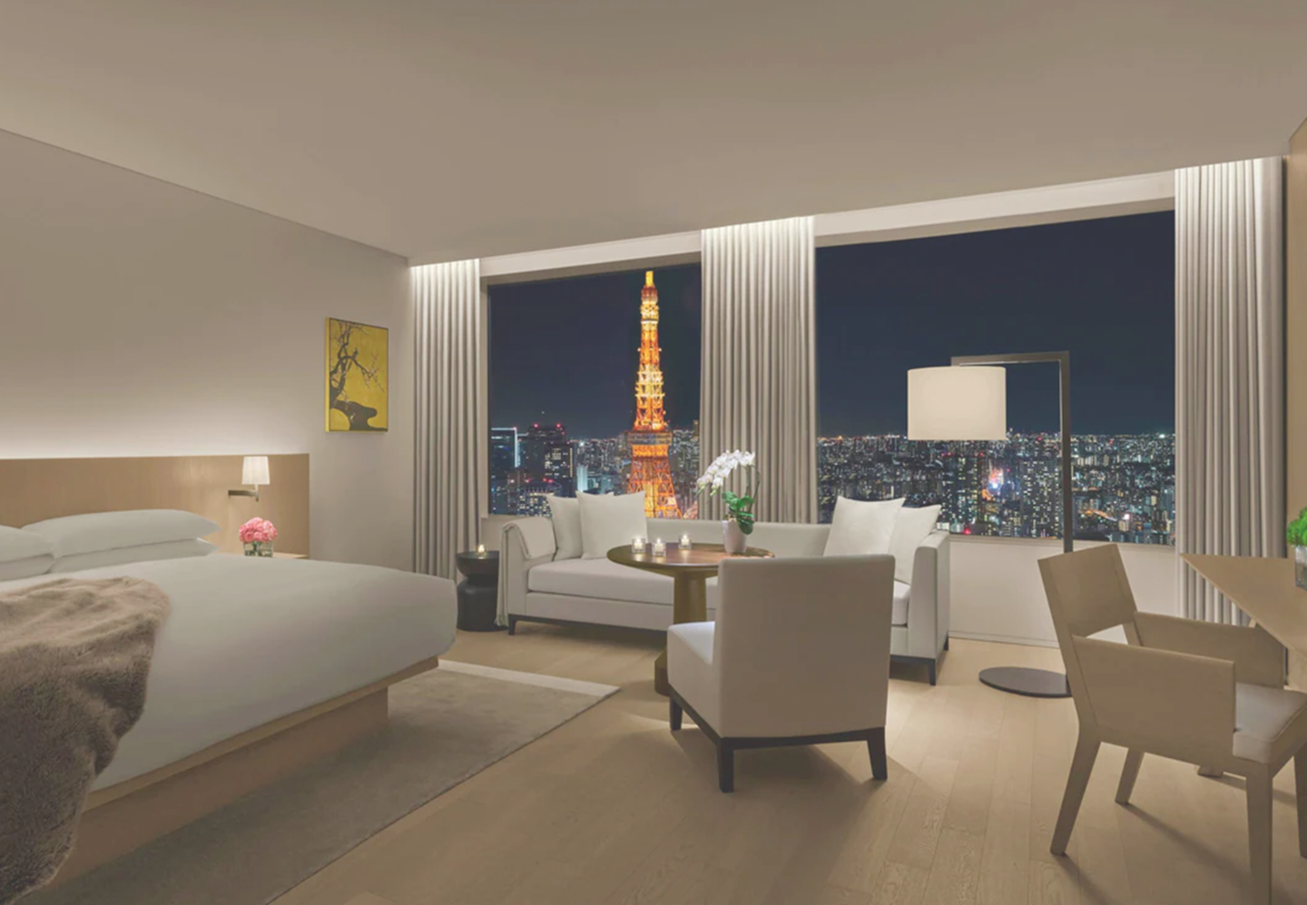 The Tokyo EDITION, Toranomon, a luxury hotel by Marriott International, is a prime destination for travelers seeking refined elegance in Tokyo. Designed by world-renowned architect Kengo Kuma, the hotel seamlessly blends sophisticated modernity with traditional Japanese elements. Guests are treated to stunning views of iconic landmarks such as Tokyo Tower and Rainbow Bridge. Inside, the atmosphere is both elegant and innovative, with an aesthetic that merges natural greenery, artistic lighting, and stylish furnishings. The hotel boasts 206 guest rooms, including 22 luxurious suites, all thoughtfully designed to offer comfort and style.