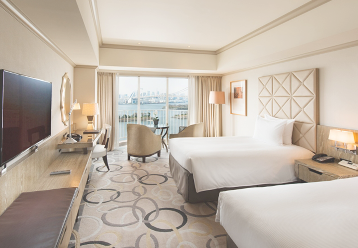 Hilton Tokyo Odaiba is a five-star hotel located in Tokyo's Odaiba, a resort area away from the city center yet with excellent access to downtown, making it popular as a base for both tourism and business. The hotel is characterized by its modern and sophisticated design, offering spacious rooms and luxurious amenities that charm guests. Rooms feature city views or views of the sea, each exuding a modern and tranquil atmosphere. Comfortable beds and high-quality bedding support guests in a relaxed stay.