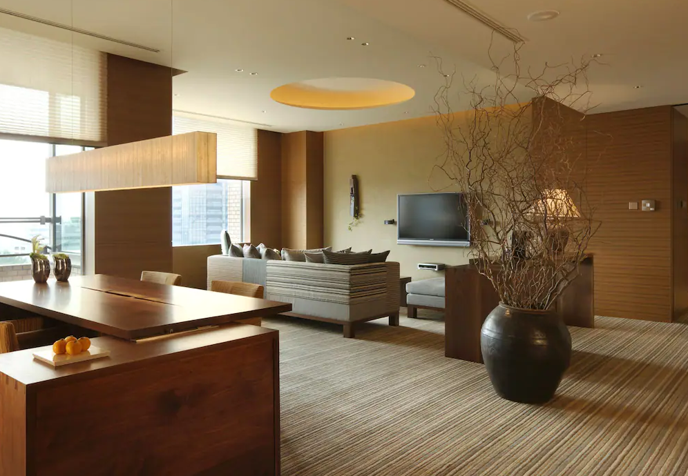 Hyatt Regency Tokyo is the perfect choice for business and city resort stays, where every guest is guaranteed high-quality service and a comfortable, relaxing experience. The View Deluxe Rooms, situated on the high floors (21-26), offer breathtaking views of the urban skyline, including Shinjuku Central Park and the Tokyo Metropolitan Government Building. The rooms are thoughtfully designed with independent shower booths, bathtubs, separate toilets, and spacious work desks. These accommodations boast a serene atmosphere with a simple and modern "Japanese" aesthetic that incorporates the use of teak wood, creating a warm yet refined ambiance. The straight lines of comb-patterned plaster walls and indirect lighting create subtle shades, enhancing the overall elegance.Moreover, the spacious bathrooms, separated by glass walls, feature deep bathtubs where guests can relax while enjoying views through the windows and watching in-room television. The Japanese-style bathrooms are designed with a shower area adjacent to the bathtub, maximizing comfort during shower use. Hyatt Regency Tokyo seamlessly blends Japanese hospitality with the Hyatt brand's inherent value, offering guests an exquisite and luxurious stay experience. It promises guests a comfortable and opulent space for their visit.