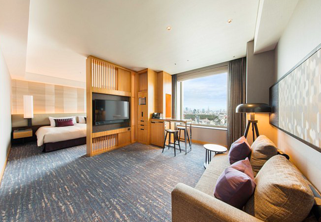 Guests can enjoy stunning views of Shinjuku, the Shibuya Station area, or the Tokyo Tower and Roppongi area. On clear days, rooms facing Shinjuku reveal sights like MIYASHITA PARK, the New National Stadium, and Tokyo Skytree in the distance. Each room features a view bath, allowing guests to soak in the night skyline while indulging in the hotel’s exclusive bath amenities, making it a perfect retreat at the end of the day.
